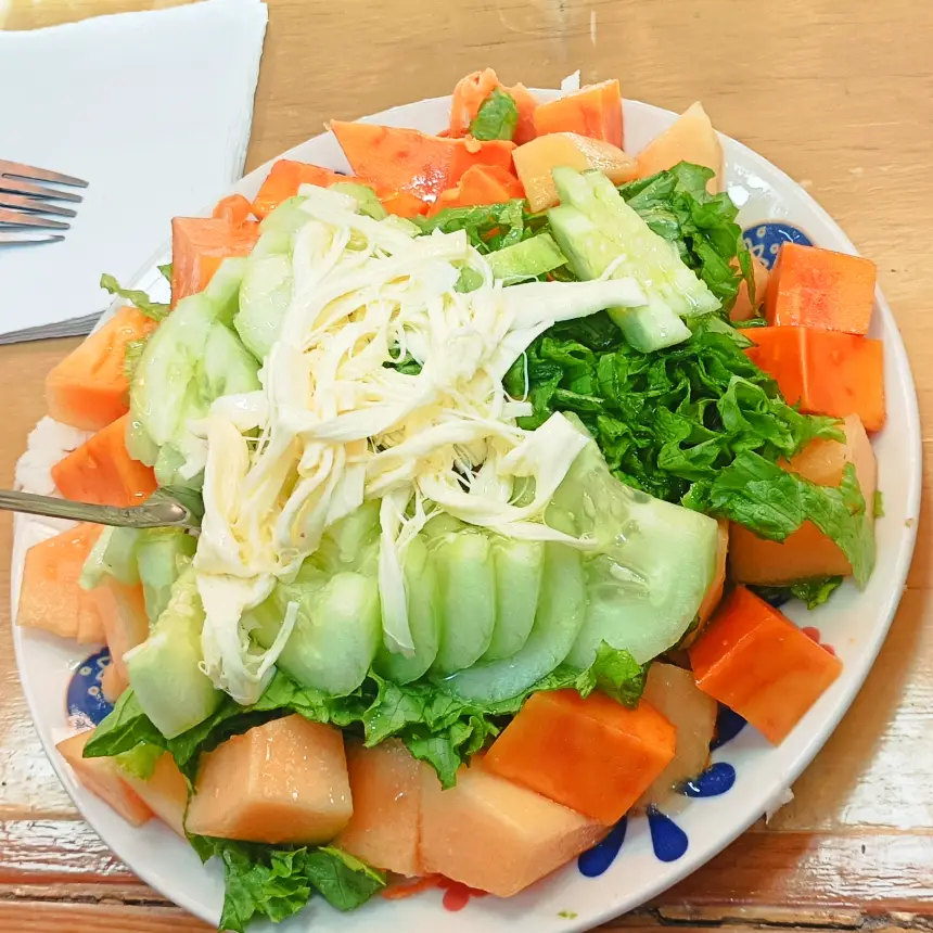 Para rematar la faena acabé comiendo una enorme ensalada verde y con fruta en el pintoresco mercado. En este lugar abundan los sitios para la comida, entre puestos de fruta, verdura, carne, productos naturales y souvenirs de artesanía.