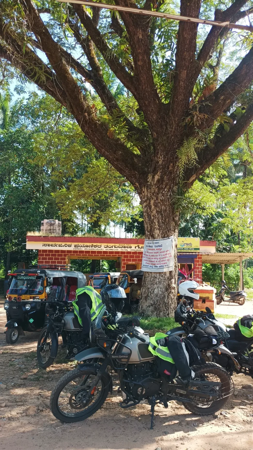 La ruta en moto es una serpenteante cuesta abajo que empezamos con niebla densa. En cuanto sale el sol hacemos una parada chai.