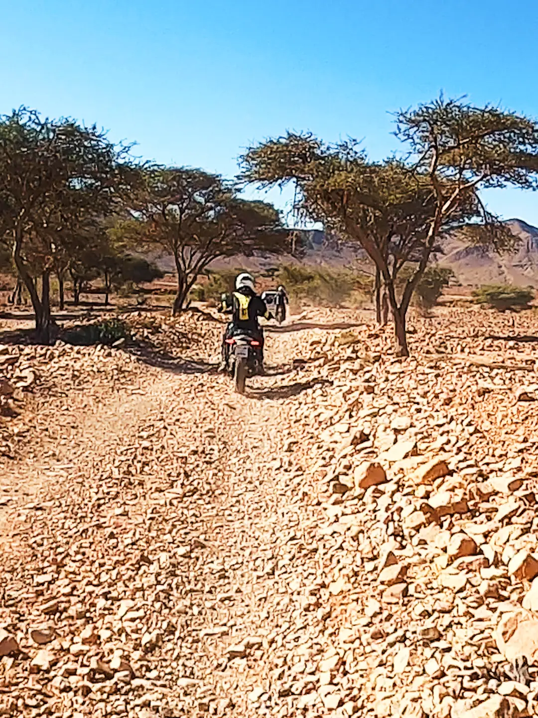 Es el día grande de esta ruta en moto por Marruecos porque es la mejor parte del viaje, una ruta mítica que sigue parte del antiguo trazado del París-Dakar. Casi 200 kilómetros de pista de piedras, y con mas o menos arena, dependiendo de la temporada y las lluvias.