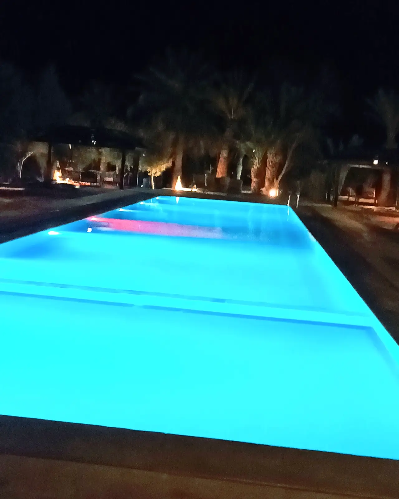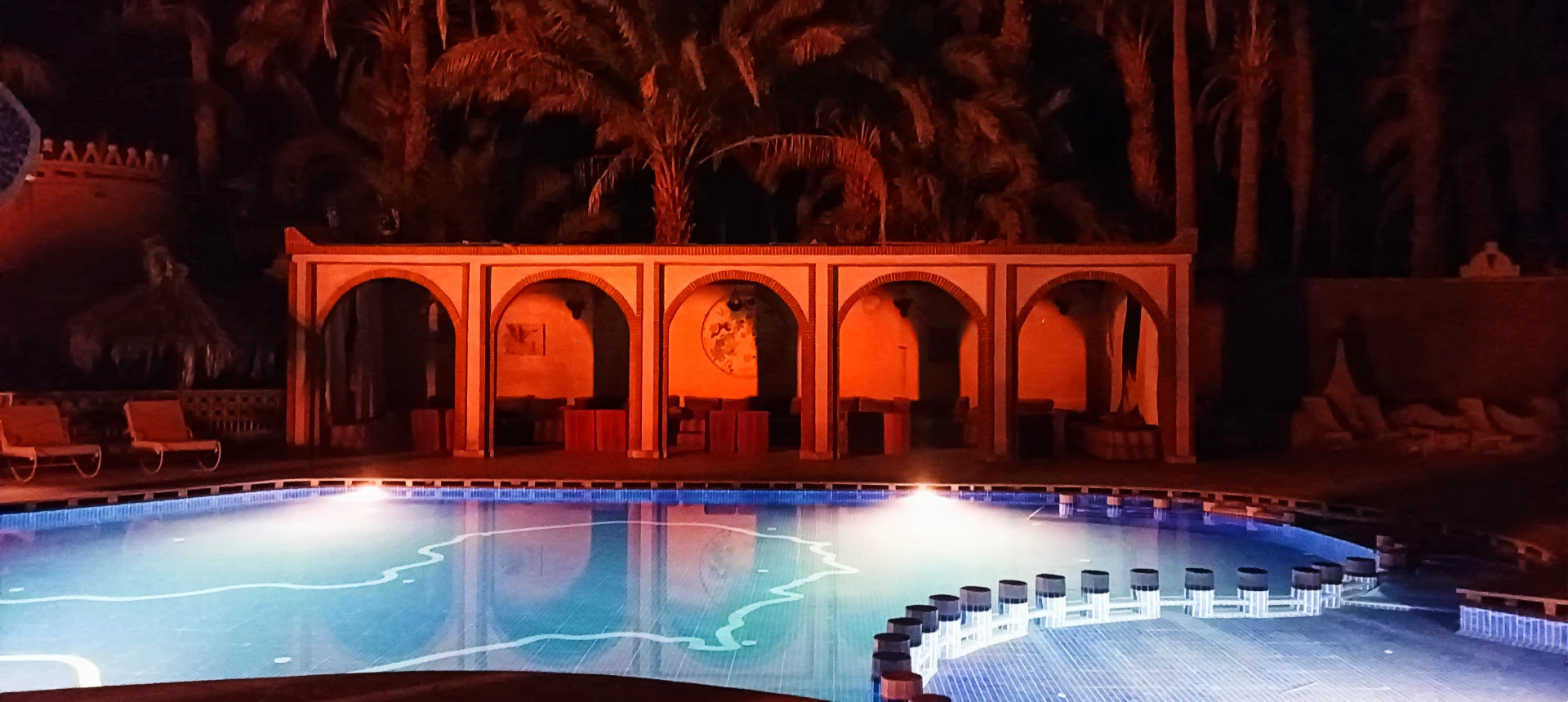 Llegan antes al hotel pero les espera una gran piscina. Cenamos juntos repasando y por la noche nos dimos una vuelta por el pueblo en pleno Ramadán.